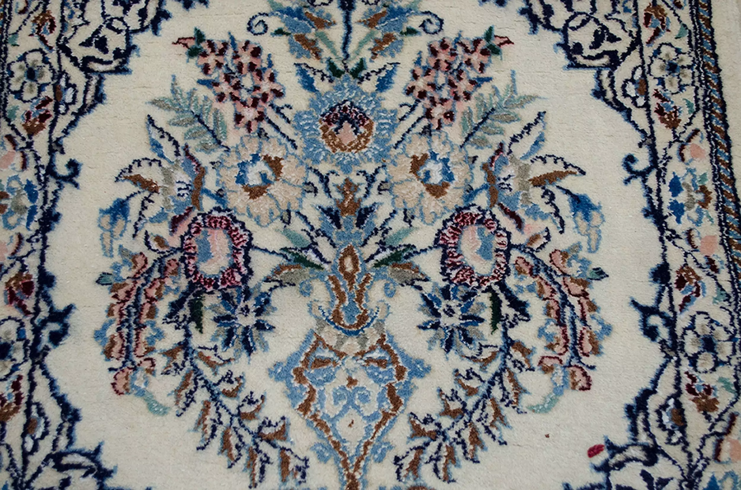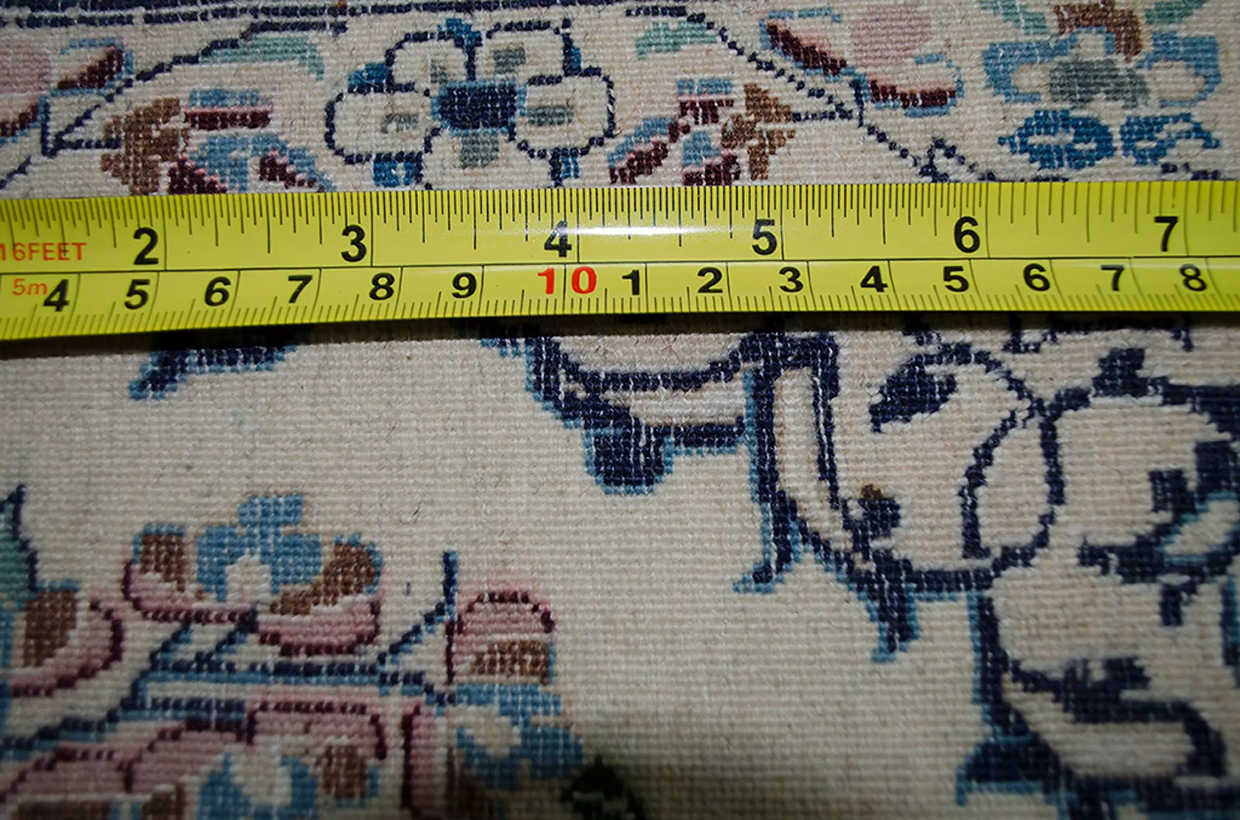 Handwoven with extraordinary attention to detail, this piece features a fine weave that brings out the intricacy of the floral and arabesque motifs characteristic of Nain craftsmanship. The high knot density and **soft wool blend—often including silk highlights—**give the rug a luxurious texture and subtle sheen, adding depth and sophistication to its appearance.