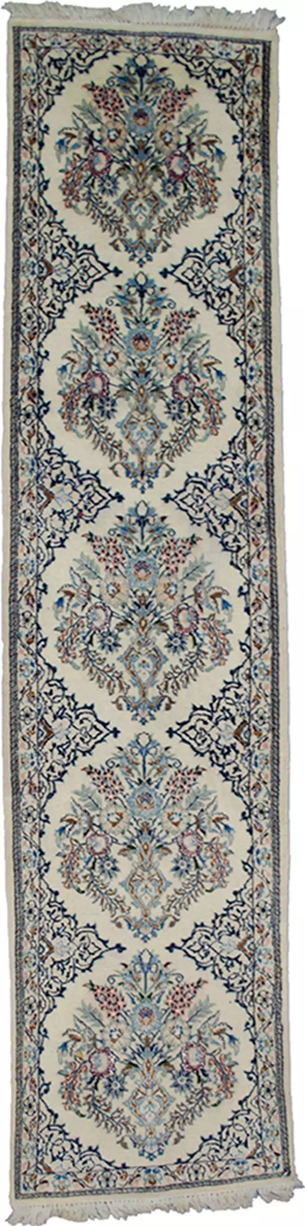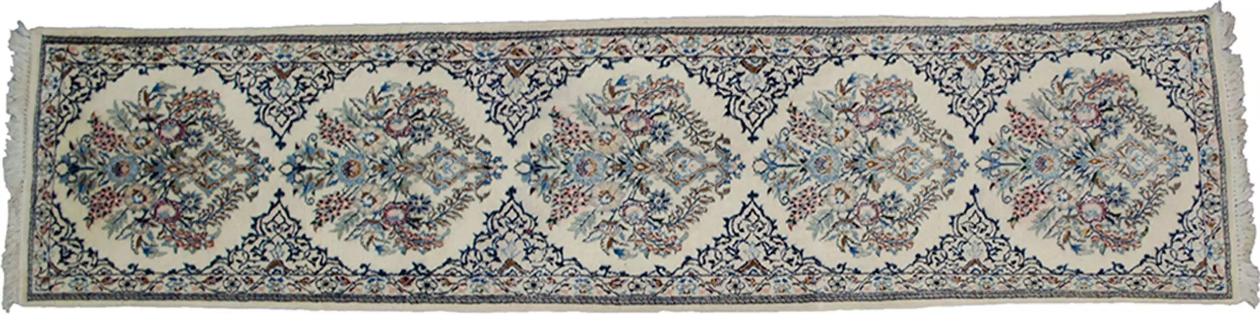 The palette of rich ivory, soft blues, and deep navies is quintessentially Nain and complements both traditional and modern interiors with ease. Whether used as a statement runner or a subtle accent, this piece speaks to refined taste and appreciation for heritage craftsmanship.