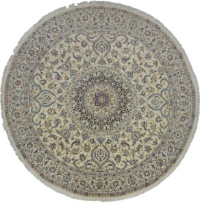 Regal Vintage Round Nain Carpet – Part-Silk with Mosque Dome Design