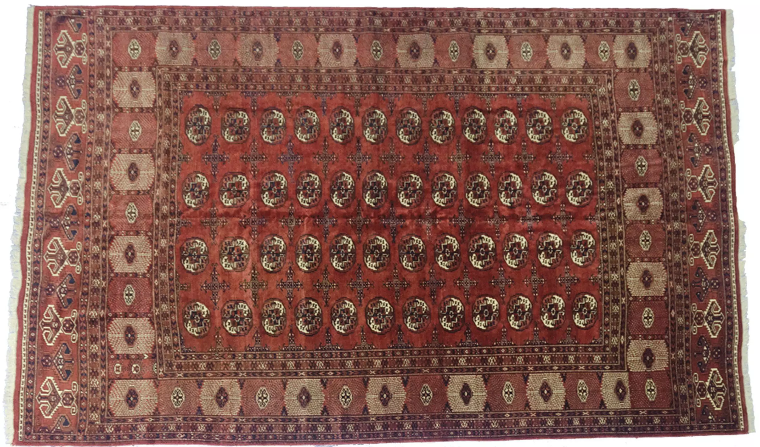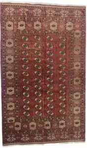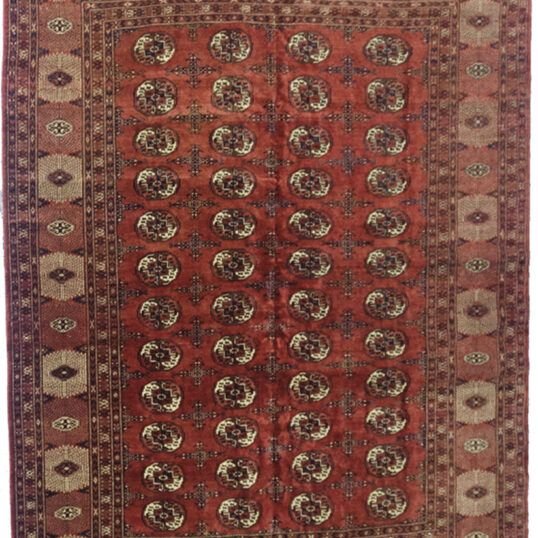 Classic Vintage Turkmen Carpet – Elephant Foot Design on Red Ground