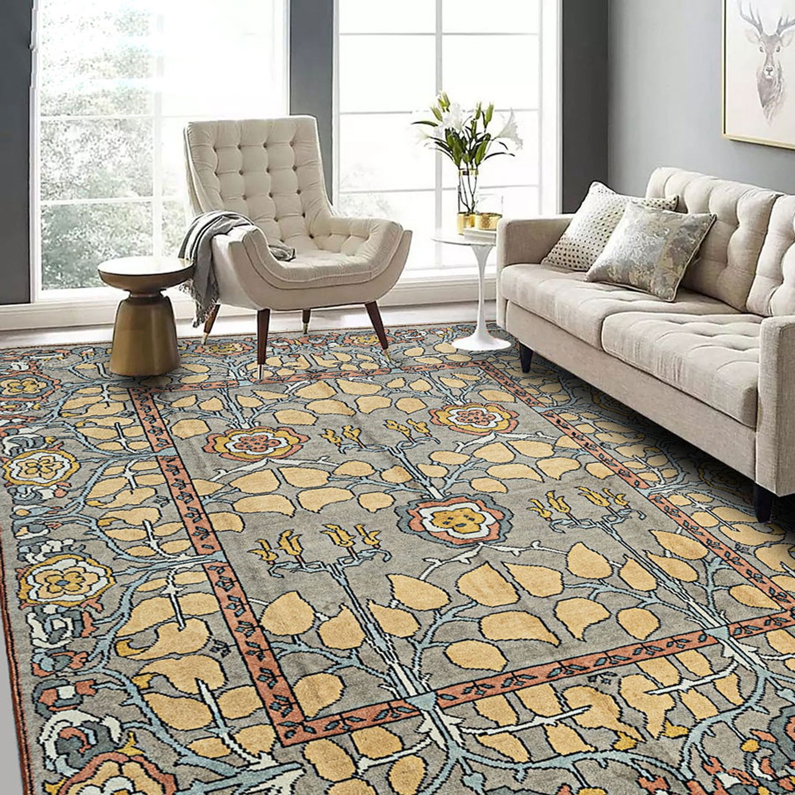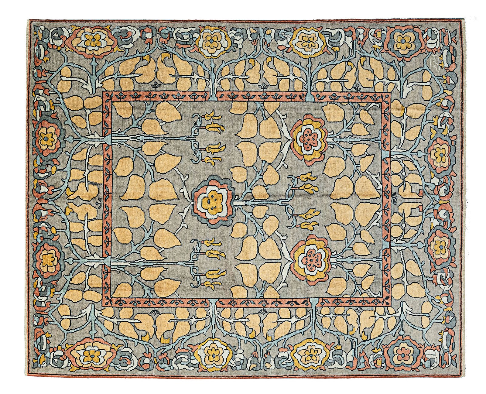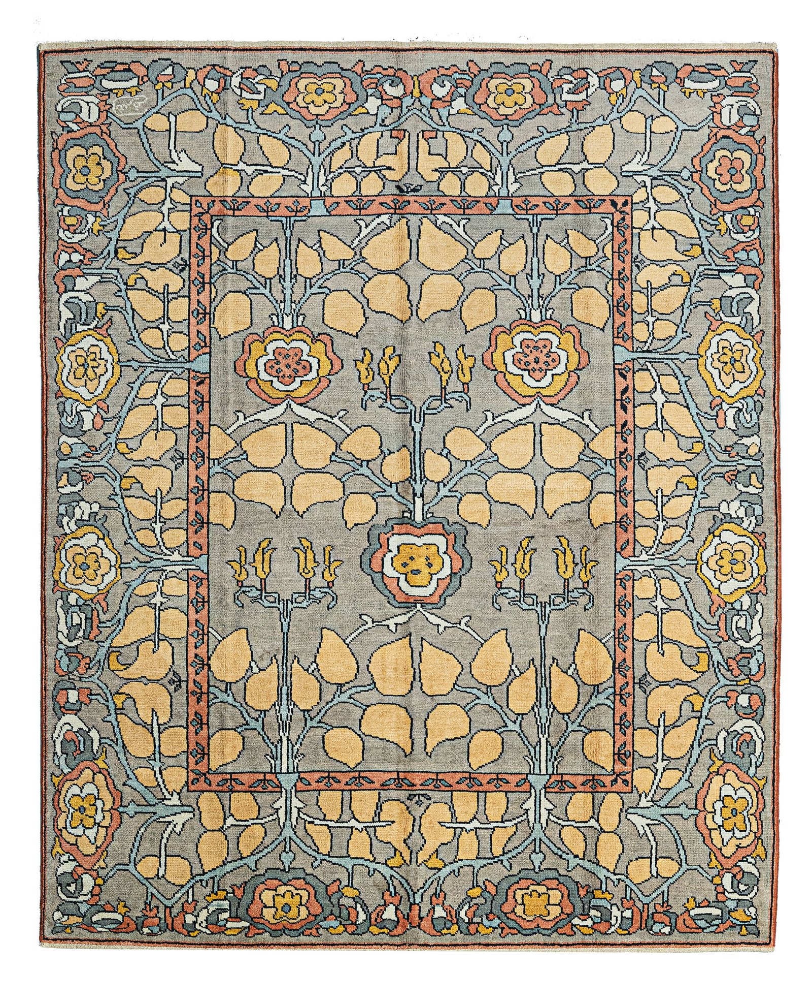 We have yet to discover any hand-knotted reproductions of Voysey’s remarkable work that can compare to the exceptional quality of ours. Our unwavering dedication to mastering traditional knotting techniques, combined with a meticulous eye for detail, has enabled us to create a piece that pays homage to one of the most esteemed designers of the Arts and Crafts movement. Crafted from luxurious, high-quality wool and dyed with natural pigments, this rug not only promises durability but also evolves into a cherished family heirloom.