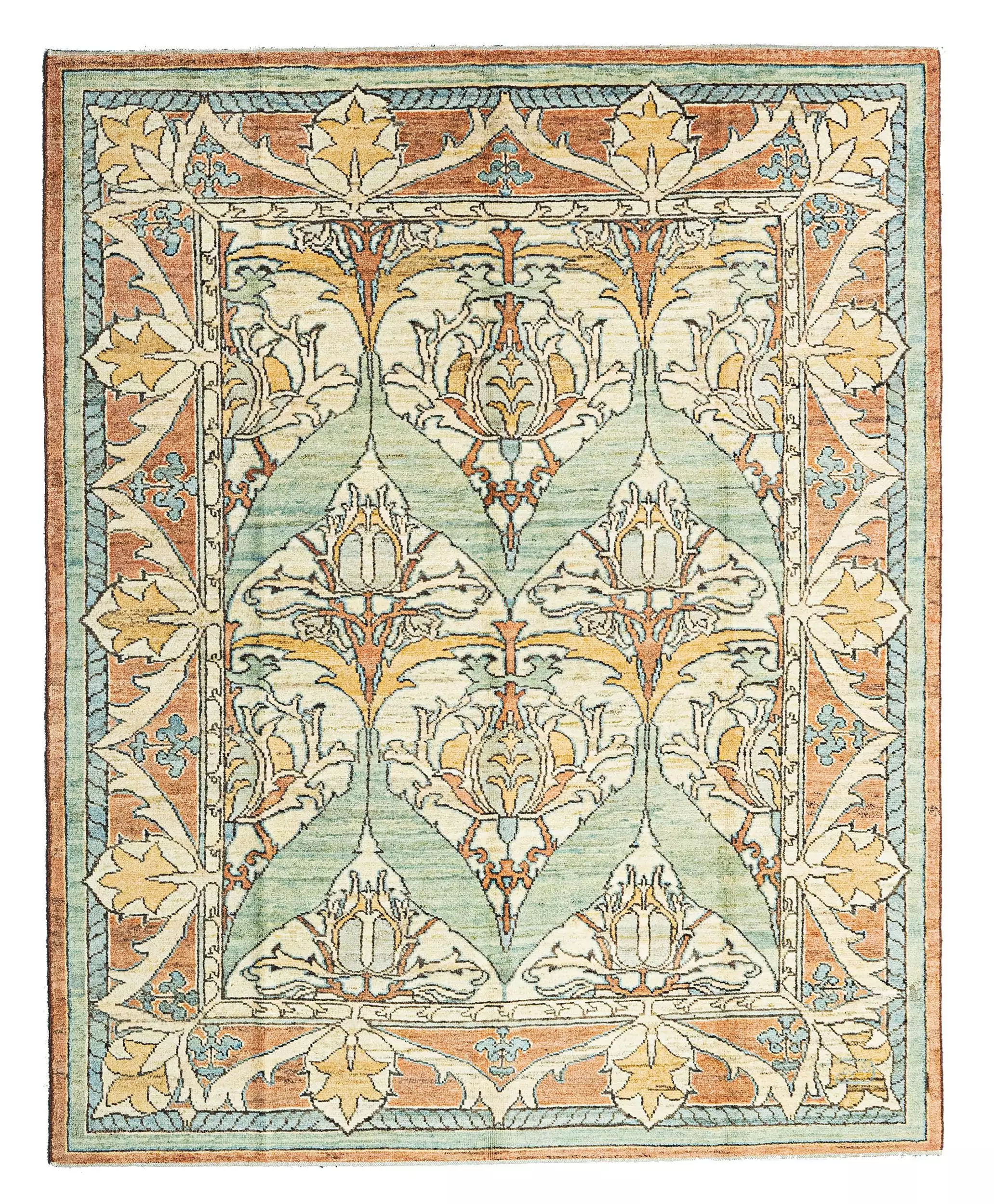 This exquisite hand-knotted rug pays tribute to Charles Voysey, one of the most iconic designers of the Arts and Crafts movement, whose visionary patterns and organic forms continue to inspire designers and collectors worldwide. Crafted with meticulous attention to traditional techniques, this rug stands out for its authenticity, refinement, and heirloom quality.